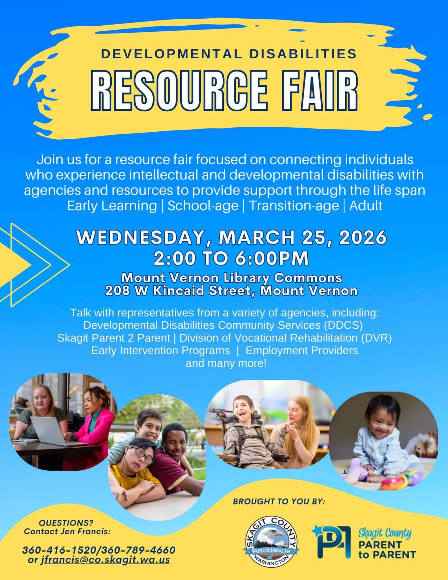 25mar2:00 pm6:00 pm2026 Skagit County ALL AGES Developmental Disabilities Resource FairFor families whose loved ones of ANY AGE experience intellectual and developmental disabilities!